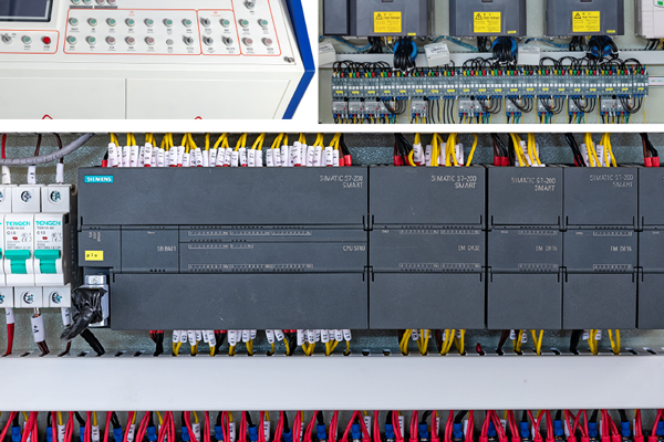 采用德國(guó)Siemens PLC可編程控制器控制,配備數(shù)據(jù)輸入輸出裝置,系統(tǒng)具有安全邏輯控制和系統(tǒng)故障自我診斷。采用德國(guó)Siemens Touch Screen觸摸屏,實(shí)現(xiàn)人機(jī)對(duì)話界面,操作簡(jiǎn)單方便。